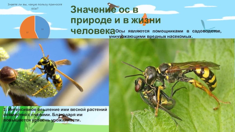 2. Интенсивное опыление ими весной растений совместно с пчёлами. Благодаря им повышается уровень урожайности.
