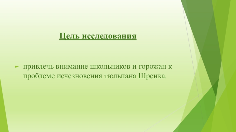 Цель исследования привлечь внимание школьников и горожан к проблеме исчезновения тюльпана Шренка.
