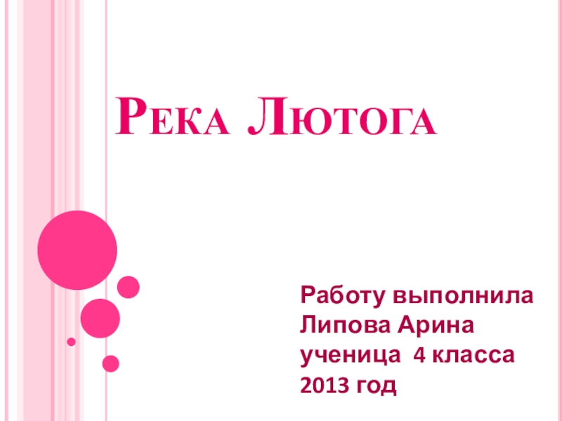 Река ЛютогаРаботу выполнила Липова Арина ученица 4 класса 2013 год