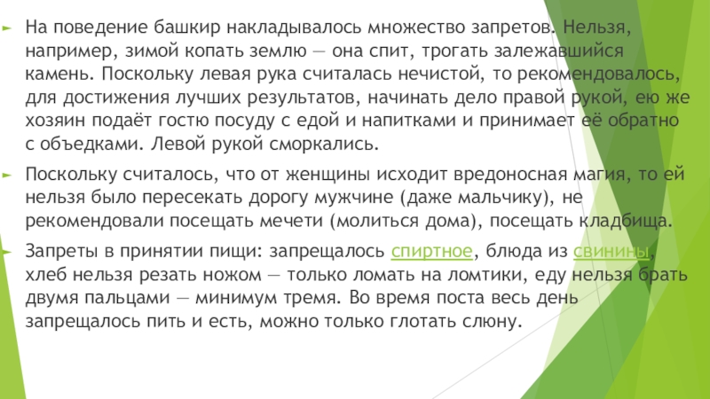 На поведение башкир накладывалось множество запретов. Нельзя, например, зимой копать землю —
