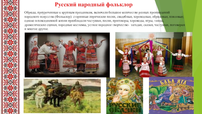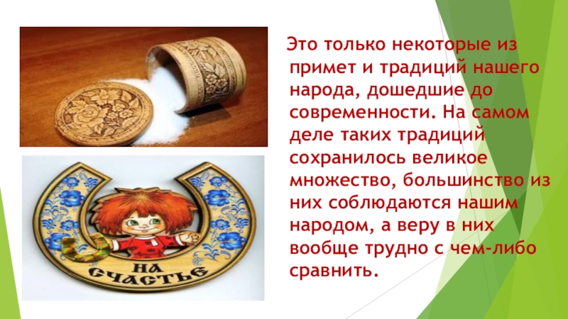 глубоко уходящие корнями не только в православие, но даже в язычество. Россияне продолжают отмечать языческие праздники, верят в многочисленные народные приметы и предания.