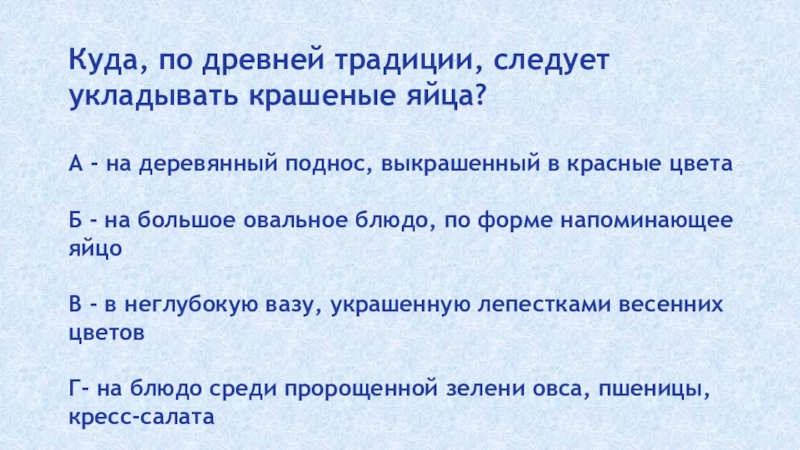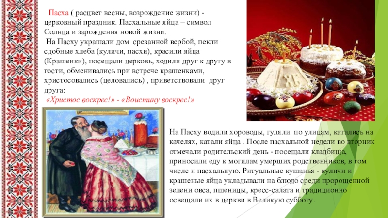 Слайд 14 Пасха ( расцвет весны, возрождение жизни) - церковный праздник. Пасхальные