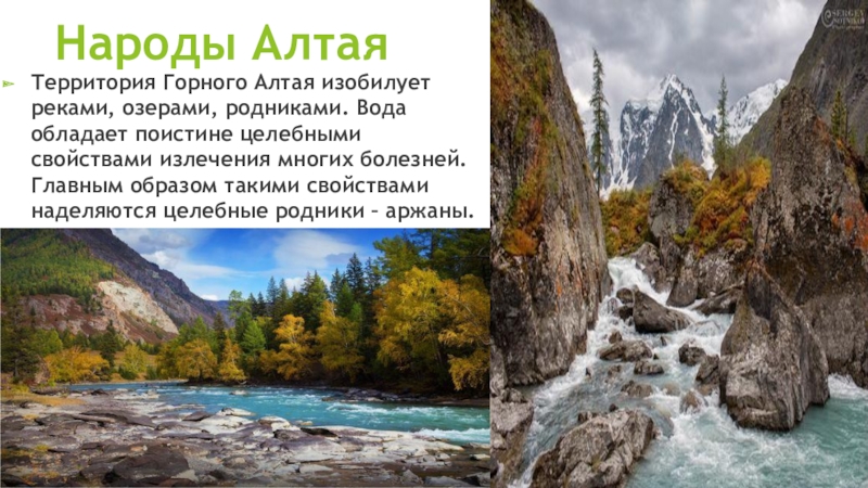 Территория Горного Алтая изобилует реками, озерами, родниками. Вода обладает поистине