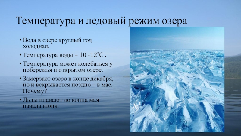 Замерзает озеро в конце декабря, но и вскрывается поздно – в мае. Почему?