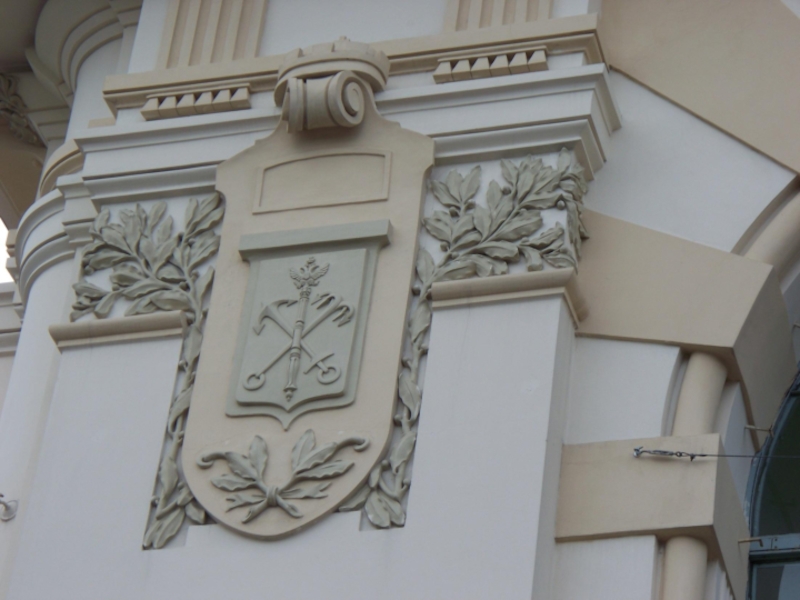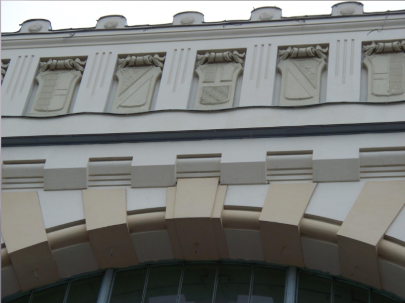2. Рассмотрите главный фасад вокзала. Как связаны архитектура и декоративное убранство здания с его назначением? Особое внимание обратите на изображение гербов над одним из входов вокзала. Подумайте с чем связан их выбор?