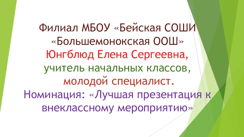 Номинация: «Лучшая презентация к внеклассному мероприятию»