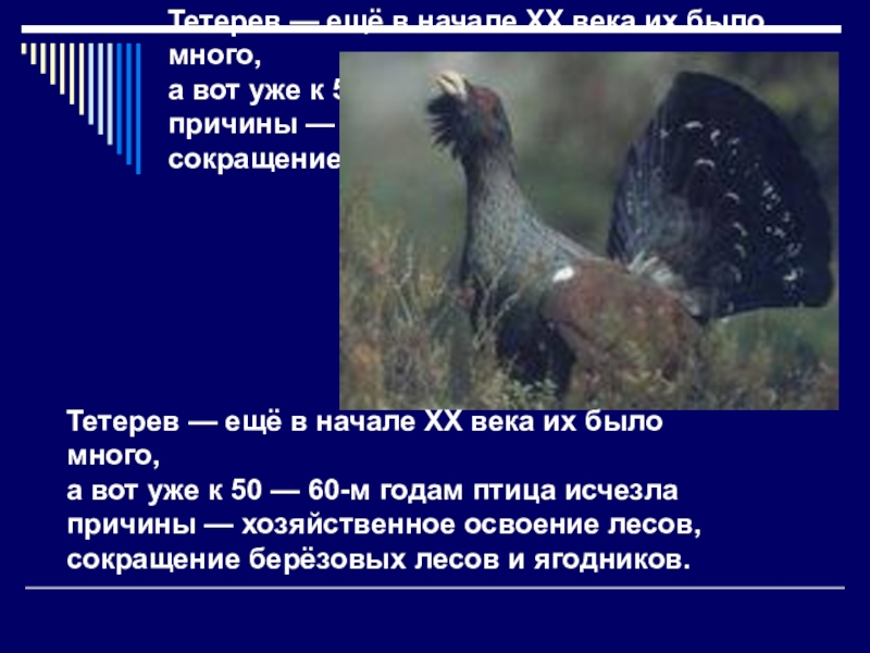 причины — хозяйственное освоение лесов, сокращение берёзовых лесов и ягодников.