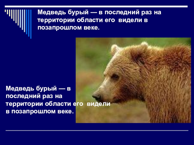 Медведь бурый — в последний раз на территории области его видели в позапрошлом веке.