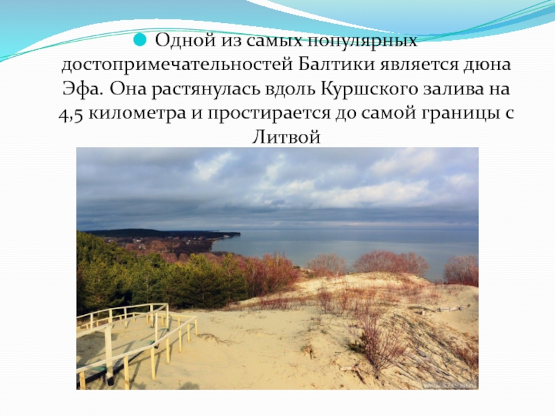 Слайд 8Одной из самых популярных достопримечательностей Балтики является дюна Эфа. Она растянулась