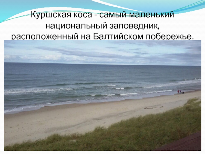 Слайд 4Куршская коса - самый маленький национальный заповедник, расположенный на Балтийском побережье.