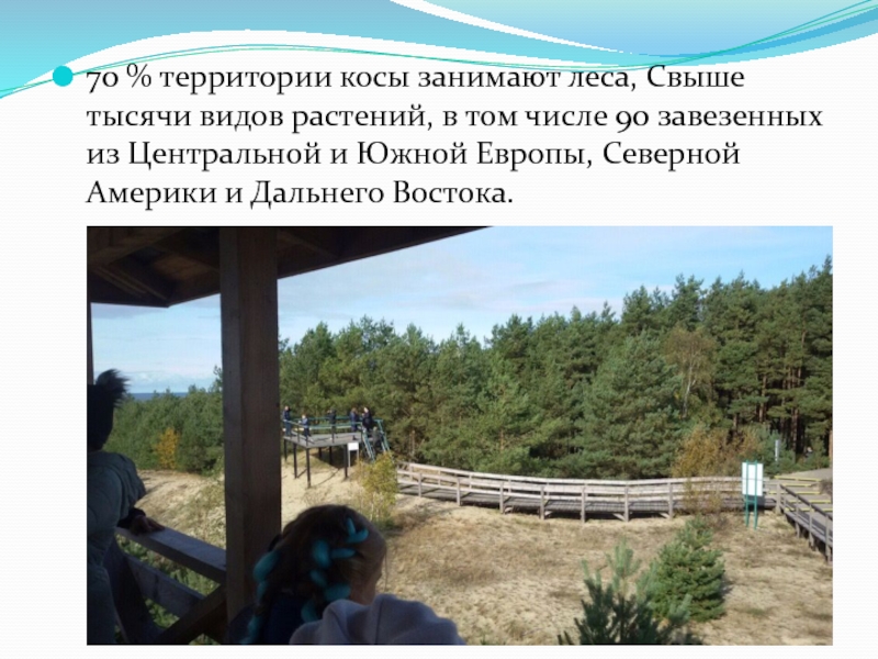Слайд 770 % территории косы занимают леса, Свыше тысячи видов растений, в
