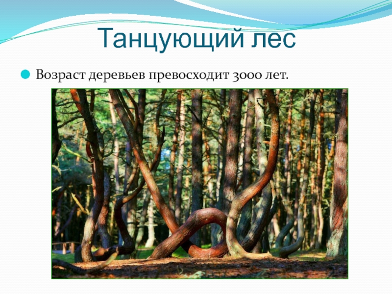Танцующий лесВозраст деревьев превосходит 3000 лет.