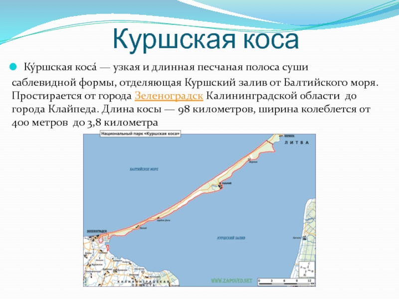 саблевидной формы, отделяющая Куршский залив от Балтийского