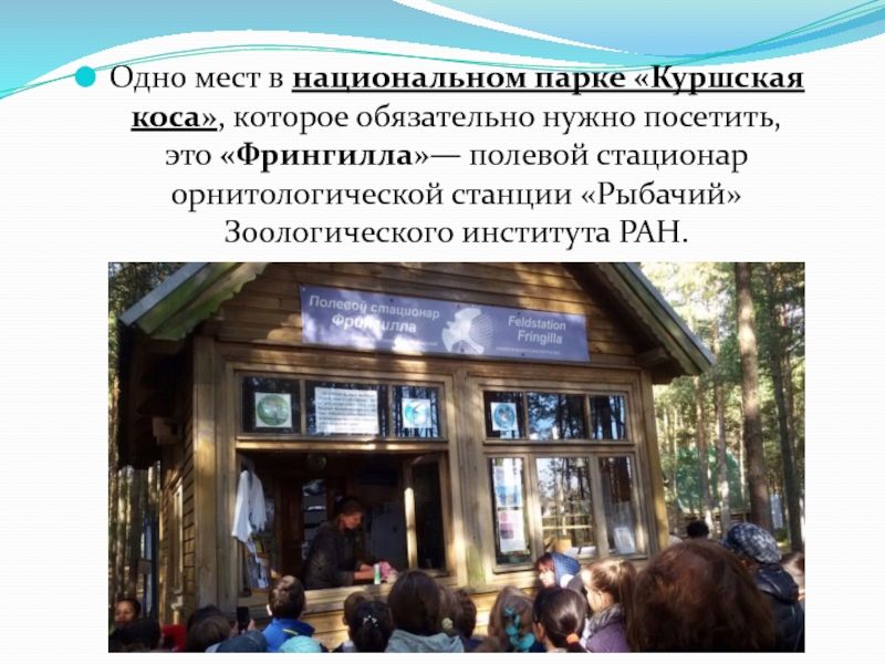 Слайд 12Одно мест в национальном парке «Куршская коса», которое обязательно нужно посетить, это «Фрингилла»—
