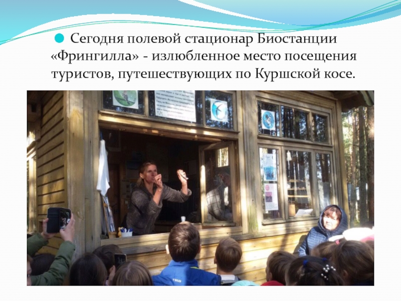 Слайд 13Сегодня полевой стационар Биостанции «Фрингилла» - излюбленное место посещения туристов, путешествующих