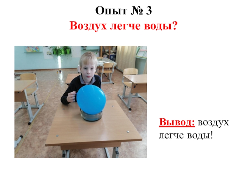 Опыт № 3 Воздух легче воды?Вывод: воздух легче воды!