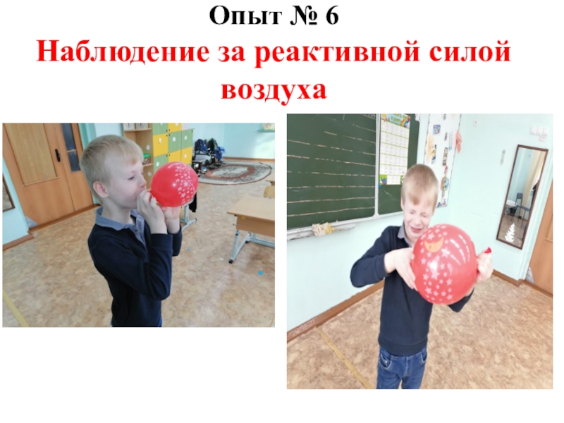 Слайд 12Опыт № 6 Наблюдение за реактивной силой воздуха