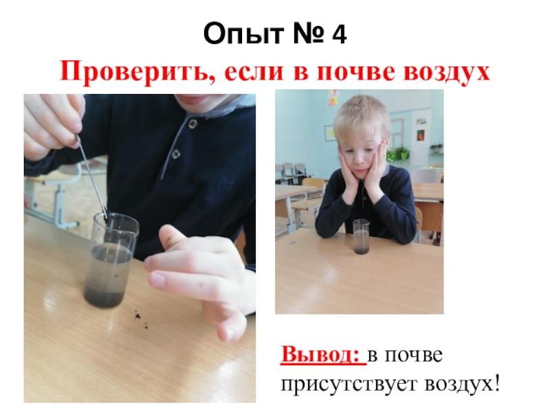 Слайд 10Опыт № 4 Проверить, если в почве воздух