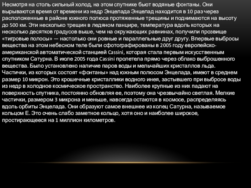 Слайд 11Несмотря на столь сильный холод, на этом спутнике бьют водяные фонтаны.