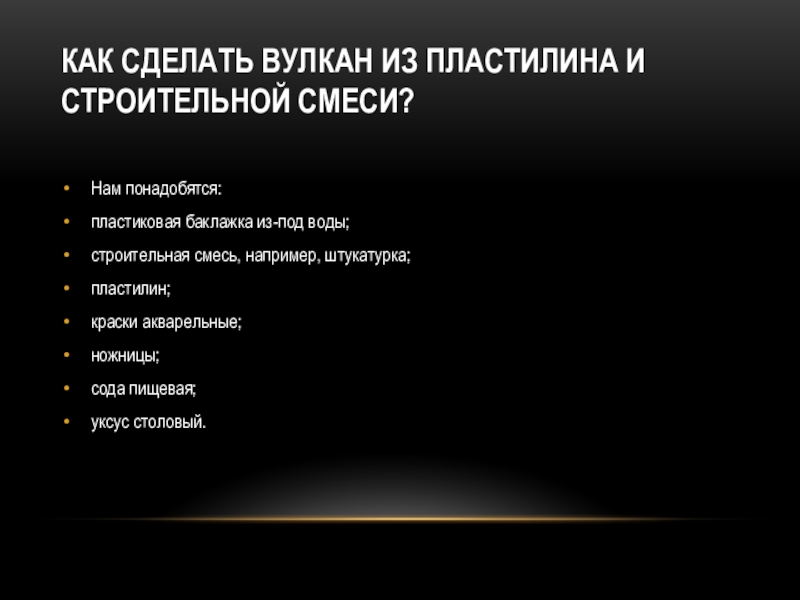 Слайд 27Как сделать вулкан из пластилина и строительной смеси?