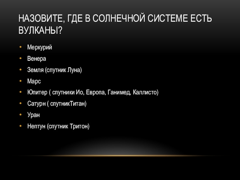 Слайд 23Назовите, Где в Солнечной системе есть вулканы?