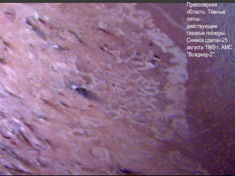 Слайд 16Приполярная область. Тёмные пятна - действующие газовые гейзеры. Снимок сделан 25