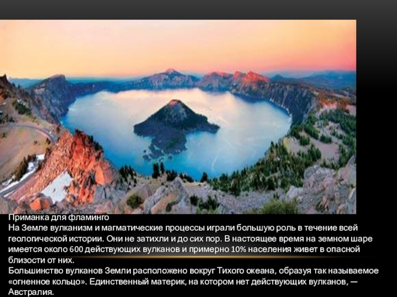 в течение всей геологической истории. Они не затихли и до сих пор. В настоящее время на земном шаре имеется около 600 действующих вулканов и примерно 10% населения живет в опасной близости от них.