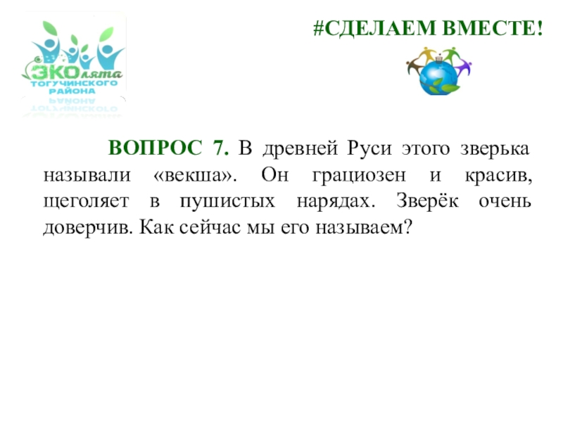 Руси этого зверька называли «векша». Он грациозен и красив, щеголяет в пушистых нарядах. Зверёк очень доверчив. Как сейчас мы его называем?