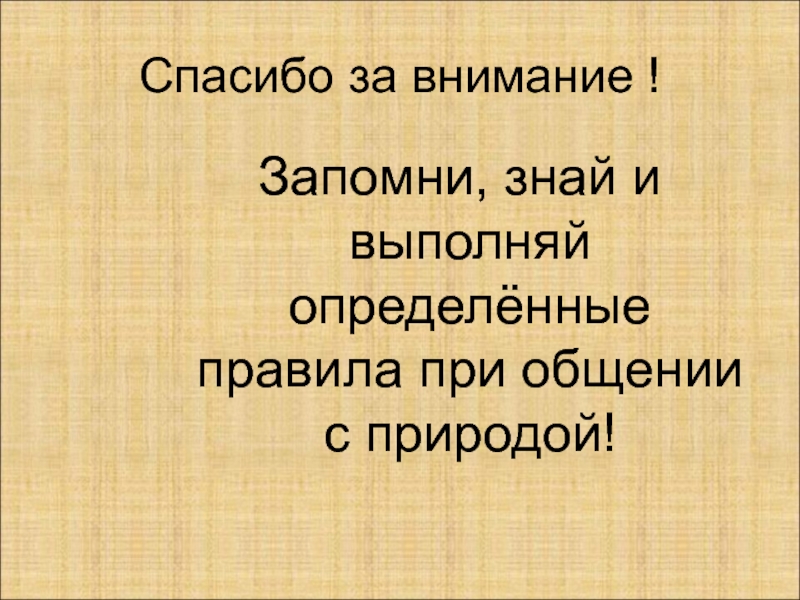 Спасибо за внимание !Запомни, знай и выполняй определённые правила при общении с природой!