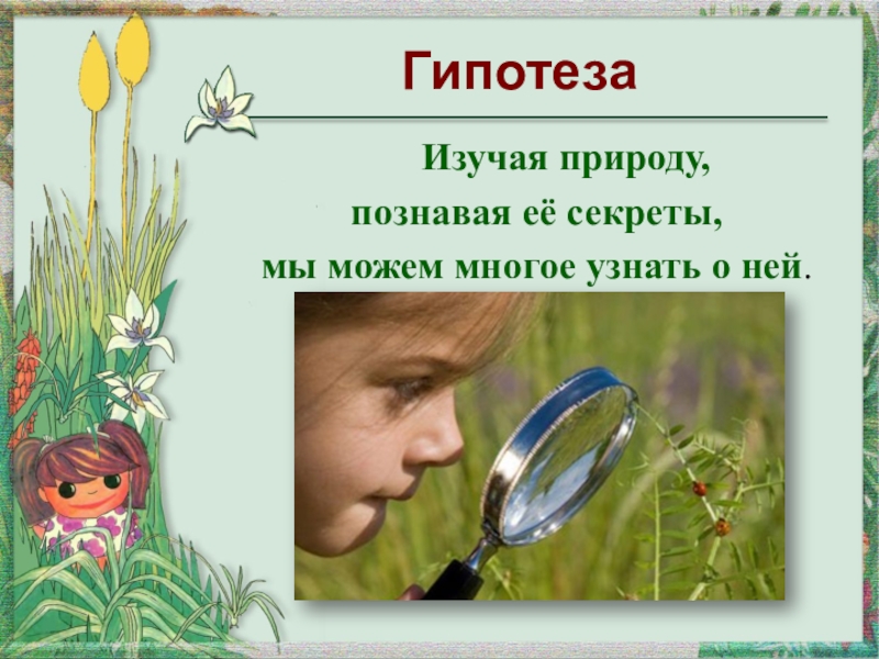 Гипотеза    Изучая природу, познавая её секреты, мы можем многое узнать о ней.
