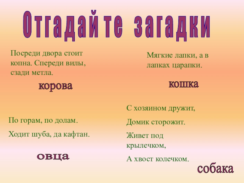 Посреди двора стоит копна. Спереди вилы, сзади метла.
