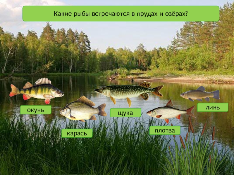 Слайд 21Какие рыбы встречаются в прудах и озёрах?