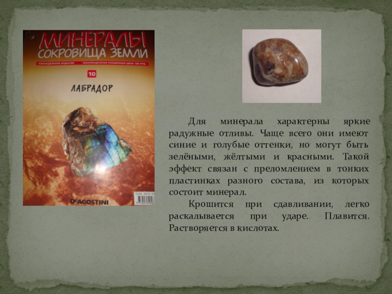 Слайд 11Для минерала характерны яркие радужные отливы. Чаще всего они имеют синие