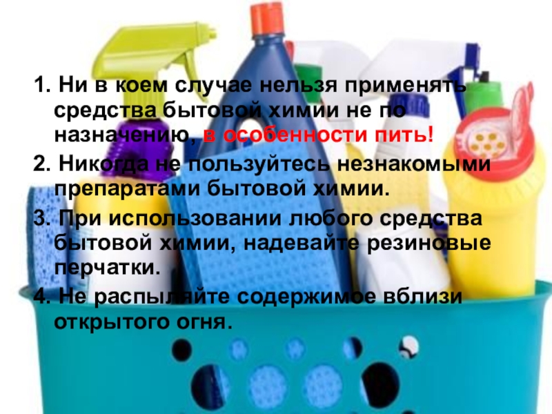 Слайд 111. Ни в коем случае нельзя применять средства бытовой химии не