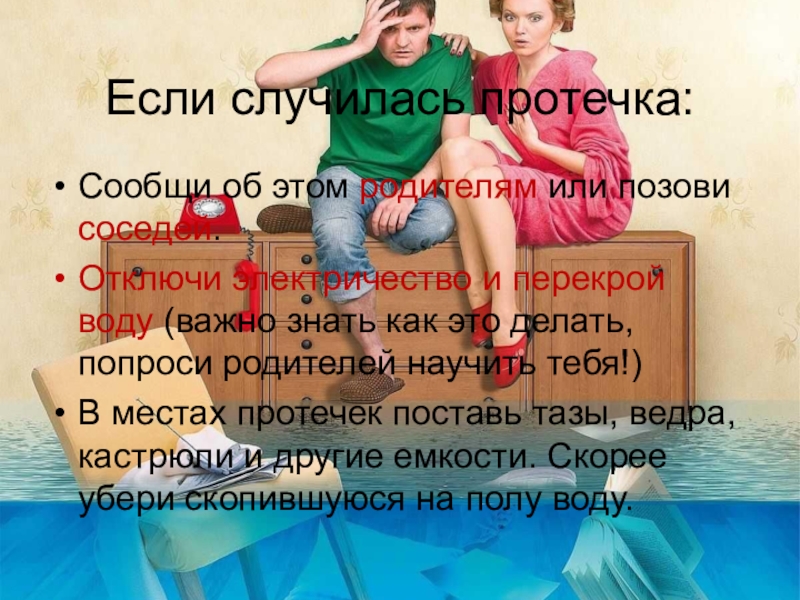 Слайд 9Если случилась протечка: