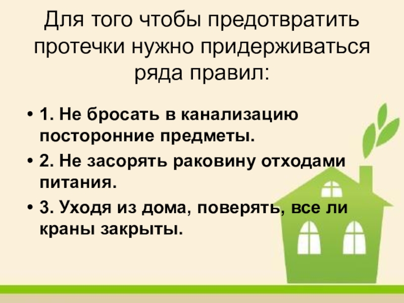Слайд 10Для того чтобы предотвратить протечки нужно придерживаться ряда правил: