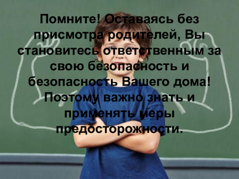 Слайд 14Помните! Оставаясь без присмотра родителей, Вы становитесь ответственным за свою безопасность