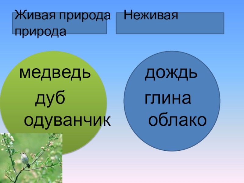 Живая природа  Неживая природа  медведь       дождь   дуб