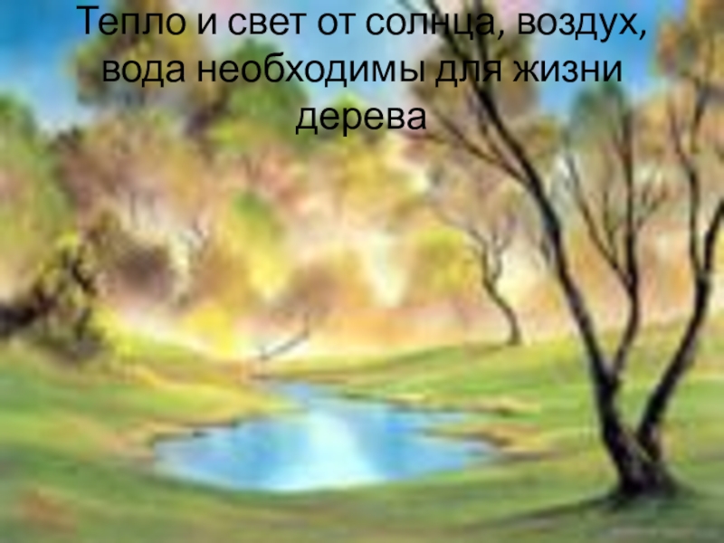 Слайд 7Тепло и свет от солнца, воздух, вода необходимы для жизни дерева