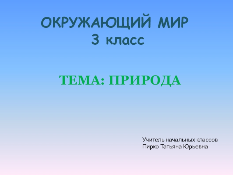 ОКРУЖАЮЩИЙ МИР  3 классТЕМА: ПРИРОДАУчитель начальных классовПирко Татьяна Юрьевна