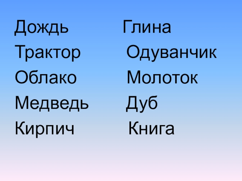Дождь       ГлинаТрактор      ОдуванчикОблако