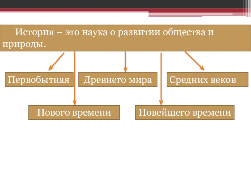 История – это наука о развитии общества и природы.Первобытная Древнего мираСредних вековНового времениНовейшего времени