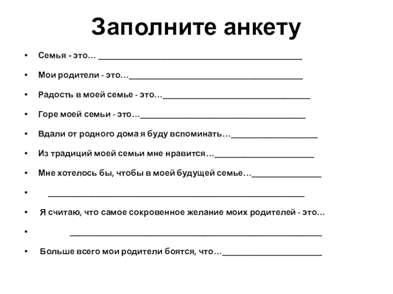 Мне хотелось бы, чтобы в моей будущей семье…________________
