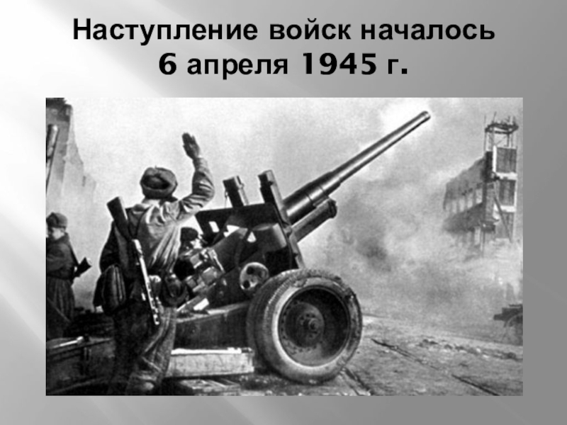 Слайд 13Наступление войск началось 6 апреля 1945 г.