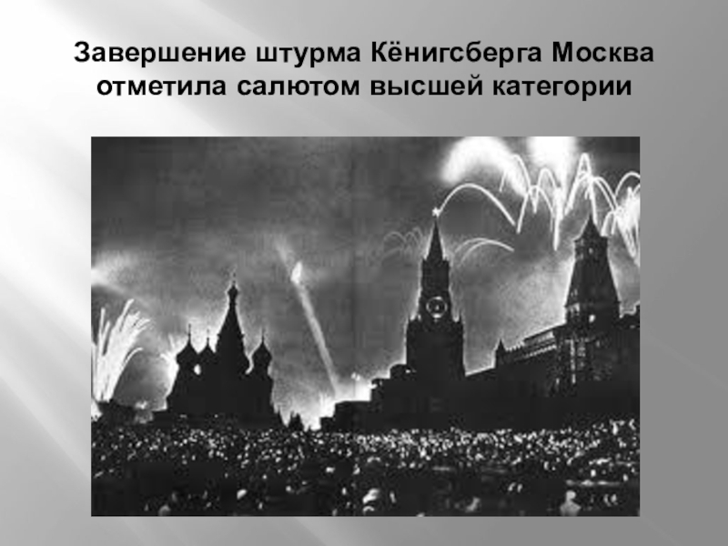 Слайд 28Завершение штурма Кёнигсберга Москва отметила салютом высшей категории
