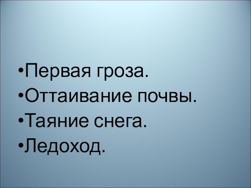 Первая гроза.Оттаивание почвы.Таяние снега.Ледоход.