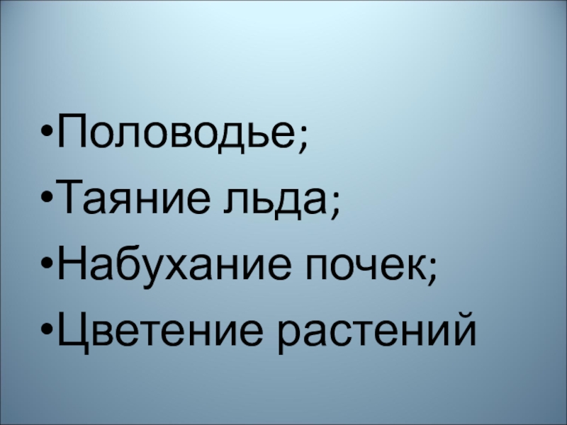 Половодье;Таяние льда;Набухание почек;Цветение растений