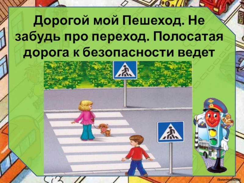Слайд 9Дорогой мой Пешеход. Не забудь про переход. Полосатая дорога к безопасности