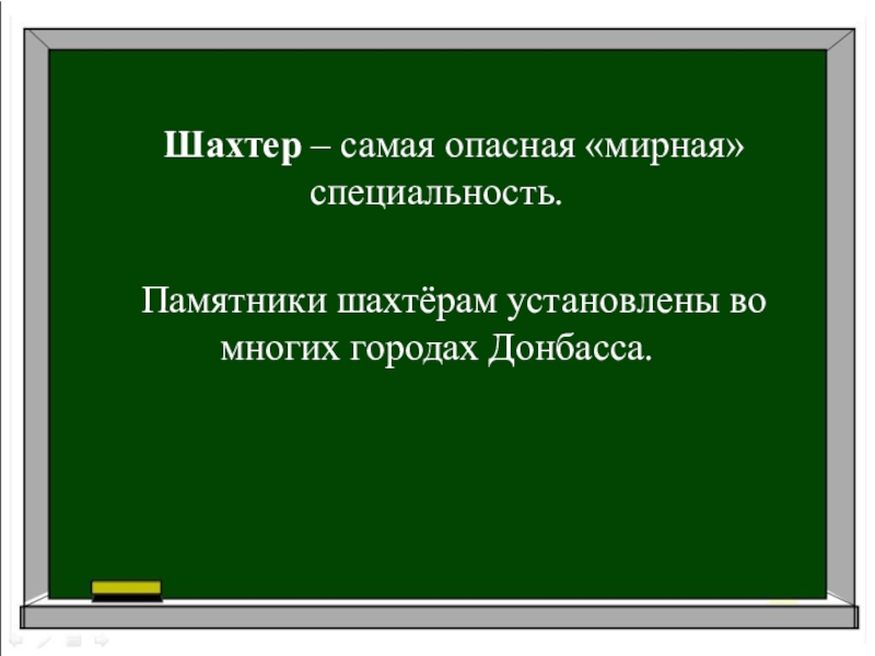 Слайд 22Шахтер – самая опасная «мирная» специальность.