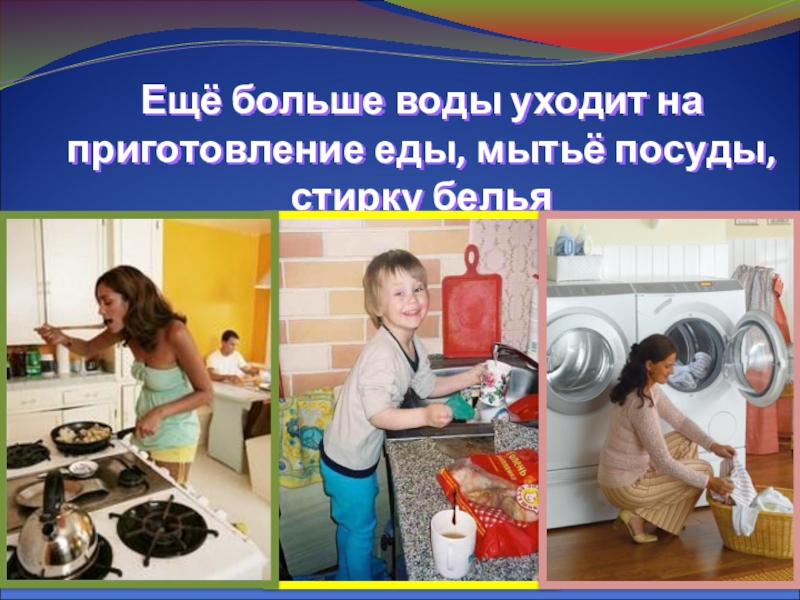 Ещё больше воды уходит на приготовление еды, мытьё посуды, стирку белья